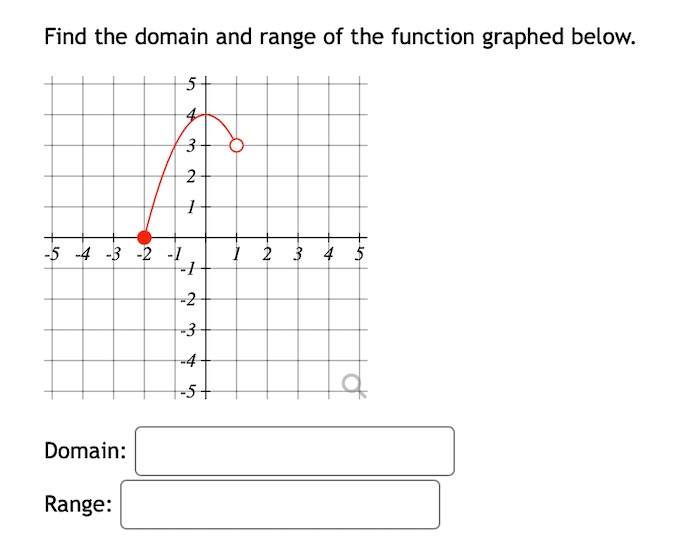 Find the Domain and Range from Equations. To avoid ambiguous queries make sure to use parentheses where necessary. Find the domain and range of the function graphed below.